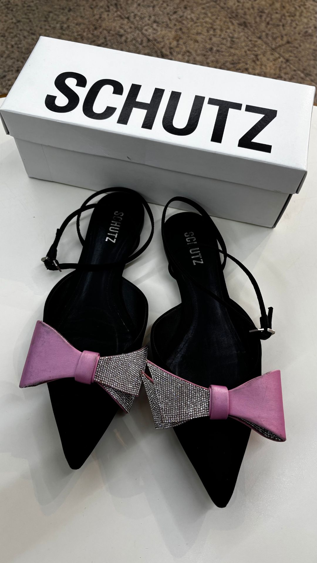SAPATILHA BICO FINO PRETA E ROSA 38